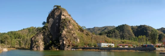 獨秀峰景區(qū)位于馮家峪村北兩公里的白馬關(guān)河畔,占地3000畝,景色秀美。游覽路線全長約15公里,植被茂盛,景觀奇特。景區(qū)內(nèi)常年溫度比市區(qū)低5—6℃,且道路平緩,是中老年人旅游,避暑消夏的理想勝地。獨秀峰是景區(qū)的主要景觀,峰高近百米,一棵百年老松,傲然挺立在峰頂。此峰三面環(huán)水,四壁陡峭,沿石階登上山峰,無限風(fēng)光,盡收眼底,和風(fēng)拂面,沁人心脾。峰腳下,在聯(lián)拱閘的攔蓄下,形成了一個近20畝的“湖泊”,波光粼粼,游魚成群,四周綠樹成蔭,泛舟其上,頓覺清涼無比,怎能不讓人心曠神怡、流連忘返。