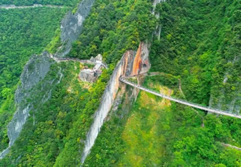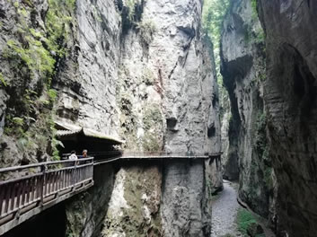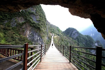 情人谷長(zhǎng)300米,是景區(qū)內(nèi)最具浪漫情調(diào)的一段山谷。山谷有“舍身崖”“心型潭”,有仿古彩樓表演巴人后裔娶親的風(fēng)俗。
