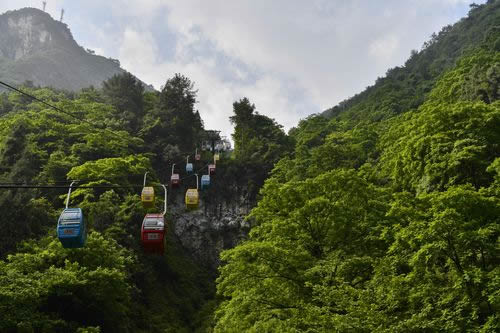 舍身崖位于情人谷尾部,海拔300~600米,因流水侵蝕作用,導(dǎo)致崖壁裂縫薄弱面巖石發(fā)生崩塌形成陡峭壁立的山崖。