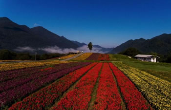 云中花海行程約13.5公里,有繁花樹影、嫣彩織帶、錦臺(tái)繽紛、錦繡花街等7大景點(diǎn),種植了硫華菊、波斯菊、金雞菊、紫松果菊、大濱菊、黑心菊、金盞菊、翠菊、天人菊等50余種高山花卉,花期為5~10月。