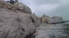 湄洲祖廟后方巖石上,有“升天古跡”、“觀瀾”等石刻。站在石上,顧盼茫茫大海,白鷗掠波,舟揖穿梭;山海相銜,海天相接。前方巖岸海床有大片輝綠巖,受風(fēng)濤沖蝕,形成天然凹槽,潮汐吞吐之聲,由遠(yuǎn)而近,初似管弦細(xì)響,繼如鐘鼓齊鳴,再若龍吟虎嘯,終則像巨雷震天,驟雨瀉地。扣人心弦的“湄嶼潮音”因而馳名。