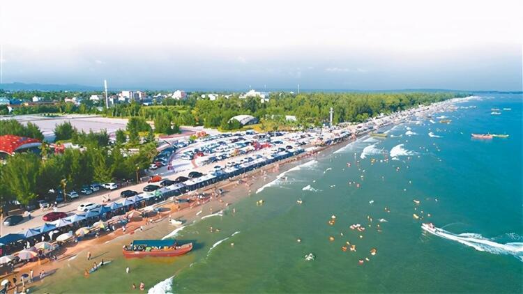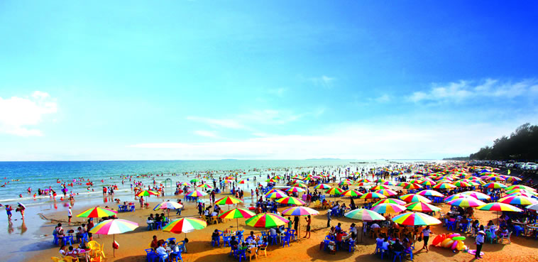 金灘,位于京族萬(wàn)尾島的南邊,全長(zhǎng)13公里,與越南的風(fēng)景名勝區(qū)萬(wàn)柱島隔海相望。金灘沙細(xì)、坡緩、水清、浪平,且無(wú)海藻、無(wú)鯊魚、無(wú)污染。沙灘由海岸緩緩斜入海中,是集陽(yáng)光、沙灘、海水于一身的天然“三·S”海濱浴場(chǎng)。岸上有20多公里長(zhǎng)的椰樹、木麻黃觀光林帶。金灘空氣氧離子含量是內(nèi)陸城市的500~1000倍,最高氣溫33℃、最低氣溫6℃,年平均氣溫在20℃~23℃之間。