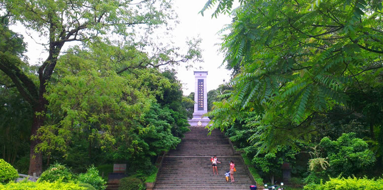 中越友誼公園總面積260畝。萋萋草木順著低矮的坡岡錯(cuò)落地生長(zhǎng)著。公園中心最高處矗立著“中越人民革命烈士紀(jì)念碑”。公園內(nèi)有1960年越南胡志明主席贈(zèng)送樹種栽的兩棵友誼樹。公園南側(cè)小山上,有在解放路戰(zhàn)爭(zhēng)中英勇獻(xiàn)身的陳漢東等六位烈士墓。陳漢東原名黃木芬,1937年參加中國(guó)共產(chǎn)黨,1945年6月在防城縣那良抗日武裝起義領(lǐng)導(dǎo)人之一。任欽防華僑抗日游擊大隊(duì)黨代表兼參謀長(zhǎng),于1945年6月底同敵人的一次戰(zhàn)斗中英勇犧牲。1959年移葬于此,墓碑上刻有“陳漢東烈士合葬墓”。從公園入口處,順著林間的小徑往右側(cè)山丘走去,走百多米,一座高聳的紀(jì)念碑便立于眼前。紀(jì)念碑正背面分別用中越文字題寫“光榮的人民英雄永垂不朽”,碑座正背面也分別用中越文字鐫刻著在抗法援越戰(zhàn)上犧牲的中國(guó)英烈名字。1958年經(jīng)東興縣人民委員會(huì)與越南海寧省政府商定,為在1954年的援越解放斗爭(zhēng)中犧牲的中國(guó)軍人立這座紀(jì)念碑。中越人民友誼公園,正是為紀(jì)念這份用鮮血鑄成的戰(zhàn)斗而修建的。