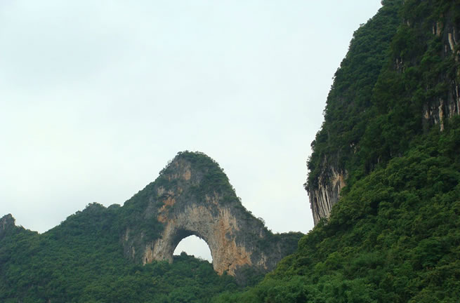 月亮山位于位于廣西壯族自治區(qū)桂林市陽(yáng)朔縣十里畫(huà)廊景區(qū)末端。山頭上有一個(gè)天然的大石拱,兩面貫通,遠(yuǎn)看酷似天上明月高掛。從不同的角度變換觀看,此洞形狀也不斷變化。如果是開(kāi)著車(chē)賞月山,那個(gè)石拱的形狀會(huì)從彎彎的上弦月,逐漸變成半月、圓月,繼而又變成下弦月。