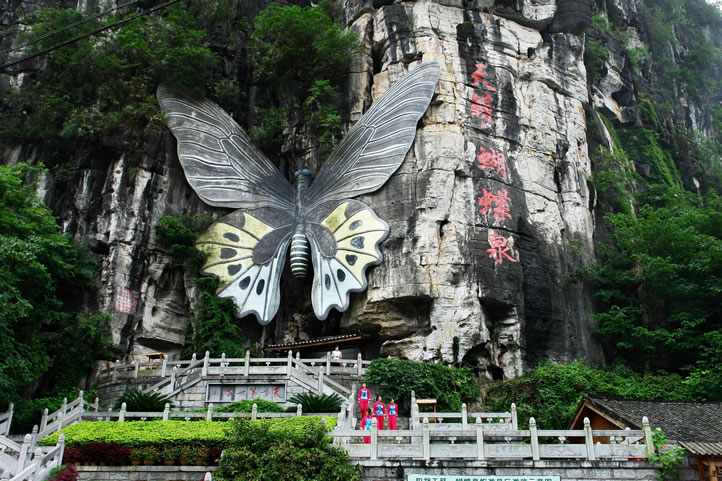 天籟·蝴蝶泉是國(guó)家AAA級(jí)景區(qū),位于陽(yáng)朔十里畫(huà)廊精華地段。以山、水、石、洞,懸空吊橋,泉水瀑布及原汁原味原生態(tài)的侗、苗風(fēng)情而得名,在景區(qū)里可與著名的101侗寨寨主及苗王的后裔親密接觸,與侗哥苗妹歡聚一堂,還可以親身體會(huì)做寨主苗王的滋味。傾聽(tīng)傳承千年并于2009年10月榮獲世界非物質(zhì)文化遺產(chǎn)的天籟之音——《多情的侗族大歌》。