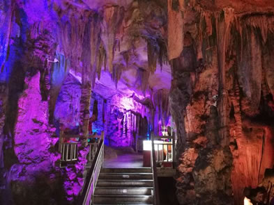 洞內(nèi)有大量奇麓多姿、玲瓏剔透的石筍、石乳、石柱、石幔、石花,琳瑯滿目,組成了獅嶺朝霞、紅羅寶帳、盤龍寶塔、原始森林、水晶宮、花果山等景觀,令游客目不暇接,如同仙境,被譽為 “ 大自然的藝術之宮 ”。