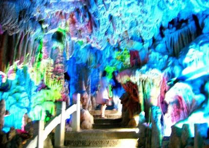 這些千姿百態(tài)的鐘乳石是由于地下水的作用,溶解了巖石中的碳酸鈣,再經(jīng)過上百萬年的沉淀堆積結晶而形成的,所有的景觀都是大自然鬼斧神工的杰作,沒有一點人工修飾,因此,蘆笛巖被譽為“大自然的藝術之宮”。