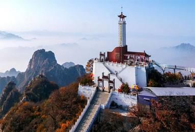 狼牙山原名郎山,因漢武帝時太子劉據(jù)之子為躲避“巫蠱之獄”避難于此而得名。西漢武帝晚年多病,疑其左右為巫蠱(埋木偶人,詛咒害人)所致,涉及皇后、太子、公主等親屬,太子劉據(jù)自殺,其子遠遁該山,故名。郎山下原有西晉太康元年(280)詔錫郎山君(漢武帝孫)及其子觸鋒將軍父子法祀碑與郎山君祠、觸鋒將軍廟。郎與狼諧音,亦名狼山。因山峰聳立,危峰參差迭起似狼牙,又稱狼牙山,為古易州十景和古城保定八景之一的“狼山競秀”。山上不但有風動石、仙人橋、南天門等自然奇觀,還有老君堂、三教堂、蠶姑廟等眾多的文物古跡。狼牙山五勇士之壯舉,名聞海內(nèi)外,為國家森林公園和愛國主義教育基地,國家紅色旅游熱線景區(qū)。緬懷先烈,銘記歷史,愛我中華,狼牙山風景區(qū)決定每年9月25日狼牙山五勇士(馬寶玉、葛振林、宋學義、胡德林,胡福才)跳崖紀念日當天免費對游客開放!拔∥⊙嗌礁撸瑸t瀟易水寒。英雄五壯士,威震狼牙山。”1941年9月25日五勇士為了掩護部隊撤離他們面對步步逼近的日偽軍,寧死不屈,毀掉槍支,義無反顧,縱身跳下數(shù)十丈深的懸崖。
