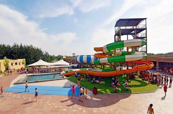 水樂園2期:巨蟒滑梯、封閉螺旋滑梯、急速滑道、螺旋皮筏滑梯、時光隧道、沖天回環(huán)滑道、炮筒滑梯、漂流河。