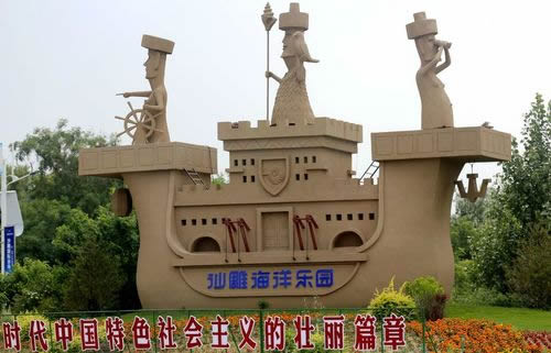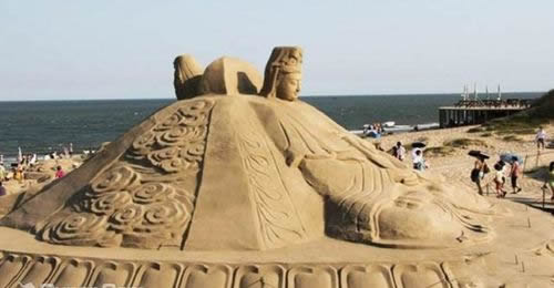 沙雕作品一覽:杏壇春秋、大唐三藏、龜、韓愈、鑒真六渡、老子出關(guān)、李白、蓮花公主、清明上河圖、日冕、盛世通寶、萬里長城、炎黃二帝、沙雕大佛、彩雕、沙雕藝術(shù)群等。