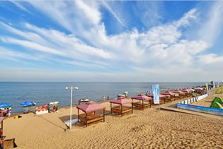 廣場緊靠沙灘浴場,浴場具有沙細(xì)、灘緩、水清、潮平四大特點,自然環(huán)境優(yōu)美,游客在這里可以體驗海水浴、熱沙浴、也可以去進行沙灘排球、沙灘足球、沙灘拔河、拓展訓(xùn)練等游樂活動。到了晚上,在海螺廣場擇一位置,看海上的夕陽如何消失,看海上明月共潮生。支幾頂帳篷,和三五好友談天說地、參加篝火晚會,品嘗烤全羊等美味佳肴,最后和大海一起等待日出,感受太陽的心跳。