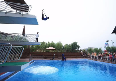 新增項目: 高空氣泡跳水。景區(qū)引進德國的凈水裝置和氣泡裝置,通過氣泡裝置降低水密度,減少入水時游客承受的壓力,降低安全風(fēng)險,設(shè)置了距離水面1m、3m、5m三種高度的跳臺。