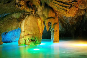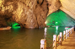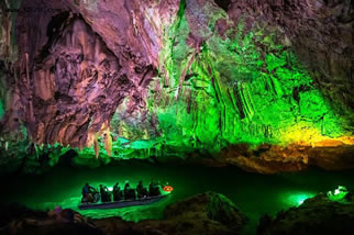 它們維妙維肖,形象逼真。特別是玉米塔、玉象和雪山三景,更是名實(shí)相符,幾可亂真。銀河兩岸鐘乳林立,石筍如畫,千姿百態(tài),光怪陸離,洞頂空窿鐘乳高懸,晶瑩斑斕,神趣盎然,沿河景點(diǎn)達(dá)100余處,千姿百態(tài),各具特色,泛舟其中,如臨仙境,這是水與石渾然天成的神秘洞穴,是迄今世界上已發(fā)現(xiàn)的最長可乘船游覽的地下暗河。