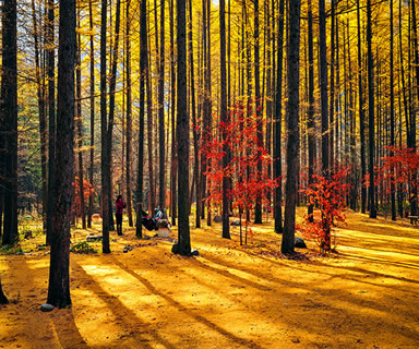 月臺子景區(qū)是主要的楓葉觀賞區(qū),每年本溪都開楓葉節(jié)。楓葉節(jié)是本溪走向全國、走向世界的橋梁,是本溪旅游事業(yè)蒸蒸日上的窗口。而關(guān)門山紅葉更是倍受贊譽(yù),每逢秋季,萬山紅遍層林盡染,紅紅火火的楓葉也會讓您的思緒隨之蕩漾,讓您不由得想起這樣一首詩:蕭蕭淺絳霞初碎,槭槭深紅雨復(fù)燃,染得千秋林一色,還家只當(dāng)是春天。伴隨著詩的優(yōu)美,我們到了月亮灣。2000年7月,我國著名的歌唱家彭麗媛曾經(jīng)到此拍攝音樂電視《世紀(jì)春雨》,這首歌曾在MTV大賽中榮獲金獎(jiǎng),大家隨著看到的就是森林浴場,您可以漫步林中,在石桌上小憩,在秋千上放歌,尋找兒時(shí)的樂趣。