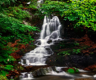 到秋季,葉子就會變成紅色,鮮艷欲滴,看上去就像一個(gè)天然盆景。圣泉,大家請看,涓涓細(xì)流順石而下,無論多旱的天它都細(xì)水長流,當(dāng)?shù)仄、八十歲的老人都知道在以前的大旱年代,圣泉曾經(jīng)救過很多人的命,因此當(dāng)?shù)乩习傩瞻阉Q作救命水和觀音水。如果用瓶子接一下,就會看到瓶壁上結(jié)了一層霜,像剛從冰箱里拿出來的一樣,人們都說;農(nóng)夫山泉有點(diǎn)甜,其實(shí)關(guān)門山山泉更香甜。看過了圣泉的纏綿,再來看一看晶簾瀑布的壯觀。晶簾瀑布就像一個(gè)水晶的簾子倒掛,關(guān)于它還有一個(gè)動人的傳說。瀑布兩側(cè)的山如刀削一樣,原來這兩座山是連在一起的,這邊也沒有瀑布的水。相傳,由于這兩座山相連在一起,山這面的百姓不得不到山那面的潭中取水,潭中有一條蛟龍,看到百姓擔(dān)水非常辛苦,于是有一天他竭盡全力指向大山,撞開了一條通道,河水就流了出來,人們的飲用水得到了解決,但是蛟龍卻因精疲力竭而死,人們?yōu)榱思o(jì)念這條蛟龍,便把大墻縫改為龍門峽,把這條瀑布稱為龍門峽的晶簾瀑布,下面的潭水稱為龍涎潭。