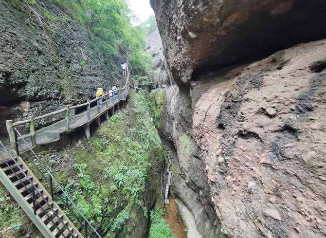 - 一線天:峽谷最窄處僅60厘米,頂部巖縫透入陽光,形成光影交錯(cuò)的神秘通道,需側(cè)身通過,全程設(shè)防滑石階與安全扶手。