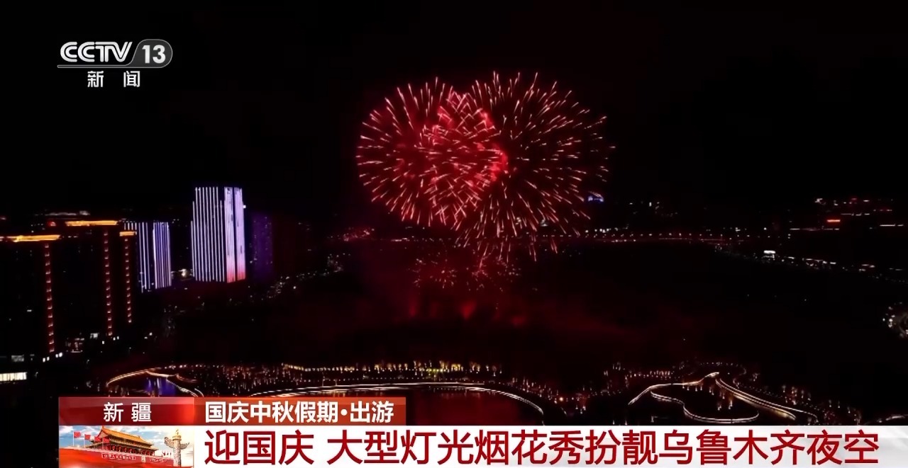 新疆:迎國(guó)慶 大型燈光煙花秀扮靚烏魯木齊夜空