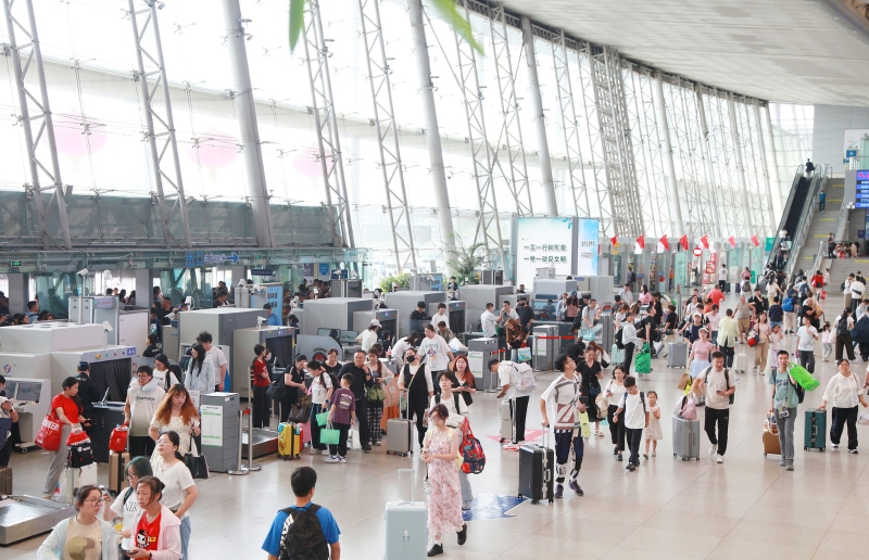 2025年10月8日,江蘇南京,南京火車站迎來國慶中秋長假返程高峰
