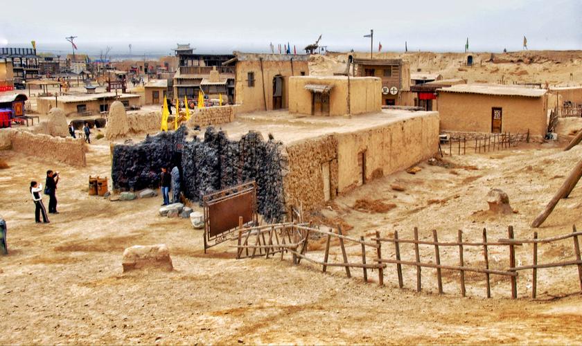 鎮(zhèn)北堡西部影城,位于寧夏回族自治區(qū)銀川市西夏區(qū)北端,占地面積0.7平方公里,建筑面積50萬平方米。鎮(zhèn)北堡西部影城有兩座古代城堡,兩堡一南一北,名為鎮(zhèn)北堡和鎮(zhèn)南堡,均坐西朝東。鎮(zhèn)北堡西部影城以古樸原始粗獷荒涼民間化為特色。鎮(zhèn)北堡西部影城內(nèi),保留和復(fù)原了拍攝過部分影片的場景和道具,供游人觀賞。展出的場景有《大話西游》中的城門樓和城門洞盤絲洞,孫悟空與牛魔王打斗時的“天崩地裂”等一系列場景!饵S河謠》中的“鐵匠營”實景!都t高粱》中的月亮門、釀酒作坊、九兒(鞏俐飾)居室和九兒出嫁時乘坐的轎子、盛酒的大缸碗具等。還建有電影資料館放映廳等影視服務(wù)設(shè)施。