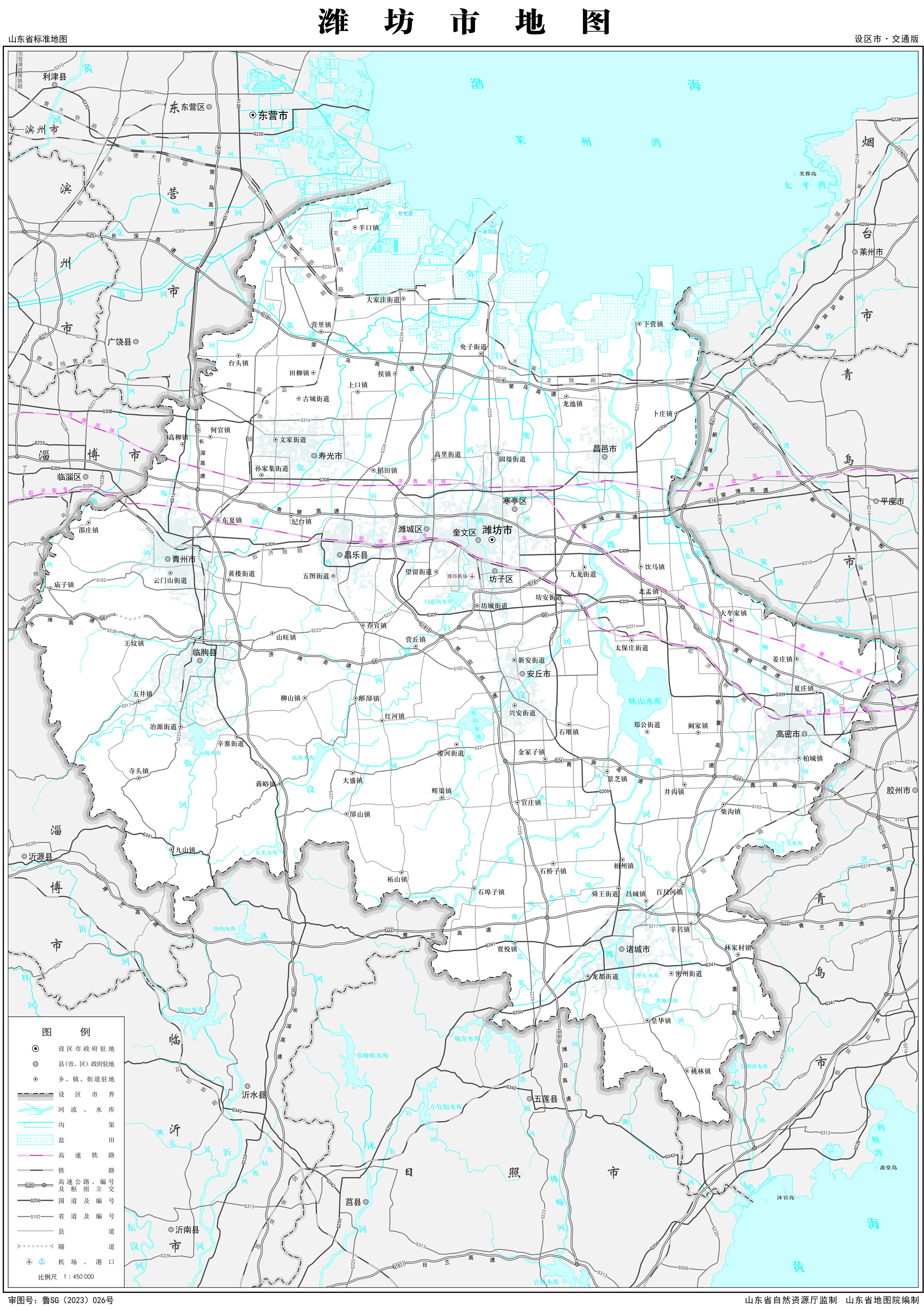 濰坊市轄4個市轄區(qū),2個縣,代管6個縣級市: