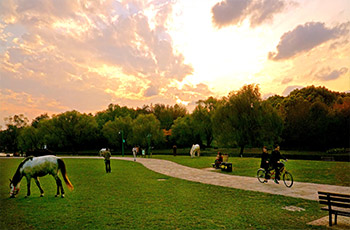 上海共青國家森林公園是以森林為主要景觀的特色公園,共種植200余種樹木,總數(shù)達30多萬株。公園分為南北兩園,北園占地1631畝稱為共青森林公園,南園占地239.6畝稱為萬竹園。南北園風格各異,北園著重森林景色,有丘陵湖泊草地,南園則小橋流水一派南國風光。除觀景之外,游人也可在園內(nèi)騎馬,燒烤和垂釣。