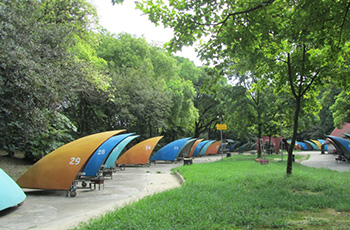 建園初期在“秋林愛晚”北部建了一處簡易碼頭。1993年投資8萬元,在簡易碼頭東面建造電動船碼頭、鋼結(jié)構(gòu)玻璃瓦頂船塢棚及修理房,建筑面積1147平方米。1994年又投資40.2萬元,在“秋林愛晚”南部建造手劃船碼頭、水泥平頂船塢和管理房,建筑面積429平方米。共有手劃船62只、腳踏船10只、電動船43只。