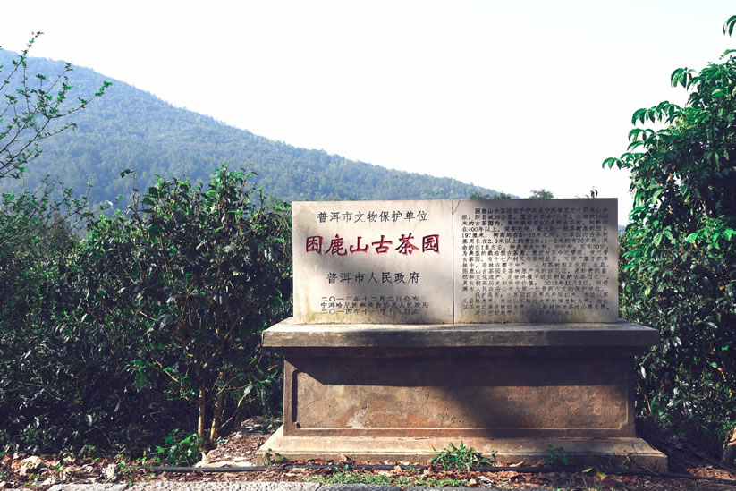 困鹿山位于無量山南段余脈,為瀾滄江水系和紅河水系的分水嶺。困鹿山歷史上為皇家專用貢茶園,貢茶的采摘和制作均由官府派兵監(jiān)制。在最高海拔2271米、總面積10122畝的困鹿山原始森林地域內(nèi),散落著千年以上的野生型、過渡型、栽培型和大葉種、中葉種、小葉種古茶樹,樹齡久遠(yuǎn),種類齊全,可謂茶葉自然博物館,是我縣發(fā)現(xiàn)的最大的古茶園,也是云南省距離昆明最近、交通最便利、古茶樹最密集、種類最豐富、周圍植被最好的古茶園。