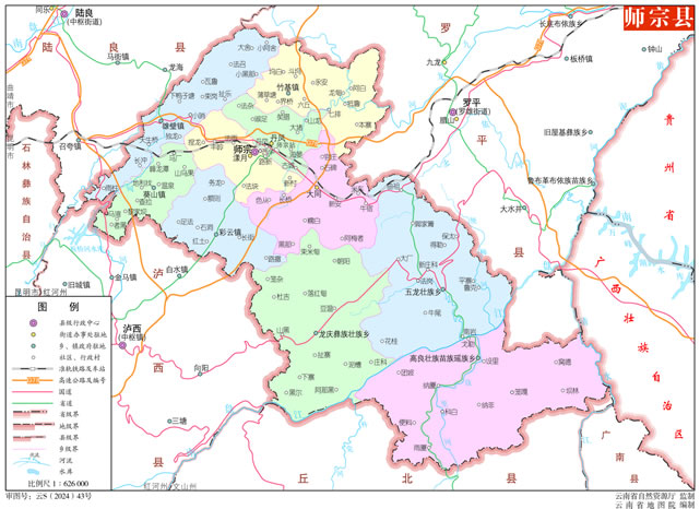 師宗縣,隸屬云南省曲靖市,位于云南省東南部,屬云南省革命老區(qū)縣之一。東與羅平縣接壤,東南與西林縣隔江相望,南鄰邱北縣,西南與瀘西縣毗鄰,北倚陸良縣。國土面積2783平方公里,師宗縣下轄3個(gè)街道,4個(gè)鎮(zhèn),3個(gè)鄉(xiāng)。師宗縣戶籍44.13萬人,常住人口37.18萬人。