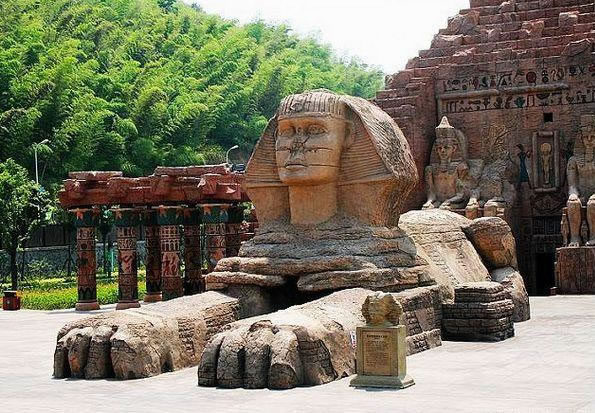 漫漫黃沙中,那宏偉的建筑,依稀就是魂牽夢繞已久的胡夫大金字塔和守護它數(shù)千年的獅身人面像;燥熱暖風里,法老們古老的咒語,斷斷續(xù)續(xù)飄來,召喚著我們不由自主的向前,渴望一探究竟。坐上埃及的太陽船,穿過金字塔黑暗的甬道,危險的鬼屋,劈波斬浪的剎那,才發(fā)現(xiàn)早已沉醉在古埃及異度時空的迷夢中。